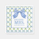 Este design de placa topicária apresenta um fundo azul-chico e de estrutura verde, com um arco vermelho-listrado, que coordena a cor azul e branca. Você pode personalizar com seu sobrenome.
