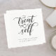 Estes guardanapos divertidos do estilo caligrafia 'Trate você mesmo' são a maneira perfeita de personalizar seu café da manhã de casamento, um buffet ou uma mesa de sobremesa para lembrar seus convidados de se tratar. Os nomes e a data abaixo podem ser editados.