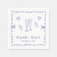 Os guardanapos de casamento da sua festa de noivado, janto de ensaio, recepção, etc., com um quadro azul ondulado adornado com arcos coquetéis, ilustrações desenhadas à mão branca de corações e tostando copos de champanhe, e os nomes da noiva e do noivo em um divertido e divertido roteiro azul escrito à mão.