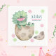 A moça do tema Dinossauro, primeiro guardanapos de festa de aniversário, apresenta um triceratops fofo eclodindo de um ovo com trilhas de dinossauro cor-de-rosa e verde. Arte por KL Stock