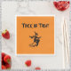 Guardanapos de papel ou TREAT num fundo colorido de abóbora com uma bruxa voadora assustadora! Adicione tempero de Halloween à sua mesa/reunião com estes guardanapos bonitos e festivos.
