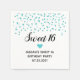 Guardanapos personalizáveis para uma doce festa de aniversário 16 com confete azul turquesa e um coração.