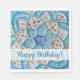 Belo e tradicional turquesa marroquina azul, branco, vermelho salmão padrão do Oriente Médio Feliz Aniversário Napkin. Padrão romântico, vibrante, tradicional marroquino de pétalas flóricas, esta imagem de uma placa pintada manualmente em cores tradicionais azul claro, azul turquesa, branco, vermelho salmão, azul real. marroquino+turquesa+azul+branco, marroquino+azul+branco+branco+vermelho, tradicional+marroquino+padrão, antigo+azulejo+padrão, marroquino+pétalas+padrão, vintage+mediterrânico, mão+pintada+padrão, marinho+azul, salmão+vermelho, turquesa+azul, real+azul, céu+azul, pétalas, azul, branco, flor, vintage marroquino+imagem, giro, colorido, brilhante
