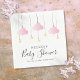 Guardanapos Twinkle twinkle little star chá de bebê menina rosa com nuvens cor-de-rosa e estrelas douradas em cordas, em um fundo branco. Personalize com os detalhes do seu evento especial em texto preto elegante. Criado por Thisisnotme©