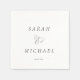 Este sofisticado guardanapo de casamento apresenta uma design elegantemente simples e clássica sobre um fundo branco primitivo. Os nomes dos casais "SARAH" e "MICHAEL" são apresentados numa letra serif elegante, separada por um delicado florescimento decorativo que serve como um conector romântico. A data do casamento "06.18.2025" é apresentada num formato sutil e refinado abaixo dos nomes, criando um equilíbrio perfeito entre formalidade e elegância. Elementos personalizáveis: Os nomes podem ser alterados de "SARAH" e "MICHAEL" A data pode ser modificada de "06.18.2025"