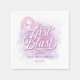 Elegante design de guardanapo de papel personalizado para despedida de solteira em cores gradientes lindas, desde lavanda até periwinkle e rosa, com uma bola de discoteca funky, fonte retrô glamorosa e luzes de discoteca cintilantes, fundo de aquarela. Este design sofisticado e elegante é facilmente adaptado a qualquer jantar especial e/ou evento de dança. Pesquise ID928 para ver outros produtos desta coleção da moda.