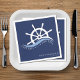Chá de panela/guardanapo de festa de solteira azul e branco náutico com helm do navio e frase "última vela antes do véu". Personalize-o com os detalhes do evento.