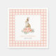 Adicione um toque final à decoração da sua festa de aniversário com estes guardanapos, com flores cor-de-água rosa e coelho num fundo de xadrez cor-de-gingham rosa.