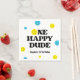 Frente e brilhante guardanapos de papel de primeiro aniversario com ícones de rosto amarelos e azuis sorridentes. "Um cara feliz" está em uma fonte retrógrada. Se você quiser alterar este texto, entre em contato comigo e farei atualizações sem custo extra.
