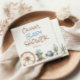Como podem ver, este pequeno e elegante e único rapazinho ocidental, o raptor de chá do bebê rapazinho tem um modelo bem projetado. Com plantas de cacto desenhadas a aquarelas azuis e chapéu e nome escrito à mão e data em azul e castanho. Tudo no fundo do creme. O que você pode personalizar facilmente clicando no botão personalizar.