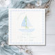 Um pequeno veleiro azul de Skipper feito em aquarelas moles e cercado com um guardanapo de chá de fraldas azul e branco. O bebê mais doce guardanapo de chá para o seu evento especial. 100% de satisfação do cliente na Zazzle todos os dias.