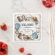 Comemore no estilo ocidental com este guardanapo de chá de fraldas "A Little Cowboy is on the Way", com botas de vaqueiro, chapéus, estrelas-xerife, ferraduras de cavalo, cordas e nuvens sobre um fundo de madeira rústica. O texto é totalmente editável, fazer-o perfeito para personalizar com detalhes, nome ou mensagem especial do seu chá de fraldas. Uma escolha encantadora para um chá de fraldas de caubói, festa temática ocidental, ou celebração de caubói.