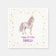 Celebrate a magical birthday with this adorable unicorn paper napkins! Featuring a beautifully illustrated watercolor unicorn with a flowing pastel rainbow mane and sparkling gold horn, this design creates the perfect whimsical look for a girls unicorn birthday party theme.