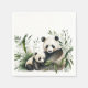 Urso panda bonitinho de aquarela em folhas de bambu com um filhote em fundo branco.