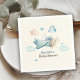 Uma ilustração adorável de um livro de histórias com um tema de aviação para celebrar a chegada de um bebê, este design de guardanapo chá de fraldas apresenta um urso voando em um avião através de nuvens e estrelas inchadas. Os elementos design são ilustrados em aquarelas moles de azul, bege e castanho. Personalize o texto com o texto desejado. Outros produtos de terceiros correspondentes estão disponíveis neste design para coordenar o tema de sua parte. Os guardanapos estão disponíveis em três tamanhos: mostrados aqui no tamanho do coquetel, eles também estão disponíveis em tamanhos de almoço e janto.
