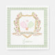 Imprima seus convidados com esses bonitos guardanapos de festa de piquete. Estes guardanapos têm uma imagem aquosa de uma crista cercada por galhos com pás de piclebol de gingham verde e rosa no centro. Há uma borda verde de gingham ao redor da borda com um padrão de coordenação no verso. O texto diz "Parabéns." As cores utilizadas incluem verde-musgo, rosa-pincel e bronzeado. Você pode personalizar com um nome.