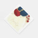 Vermelho escuro romântico e flores azuis marinhos com folhas de ouro guardanapo de papel botânico para casamentos.
