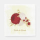 Guardanapo De Papel Vermelho escuro romântico e flores brancas dourada