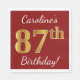 Guardanapo De Papel Vermelho, Faux Dourado 87.º Aniversário + Nome Per