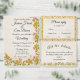 Pretty hand drawn botanical wildflower and butterfly design in yellow ochre and pink for wedding stationery