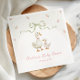 This baby shower napkin design features a cute goose and her mama, and a whimsical vintage frame design with stripes and garden flowers. Perfect for the trendy goose/duck theme, or backyard garden baby showers.