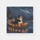 Mergulhe na magia da temporada de férias com esta ilustração lindamente detalhada, mostrando um cachorro orgulhoso sentado em um barco festivamente decorado, deslizando através de um lago de Natal sereno. As luzes cintilantes dos pinheiros próximos refletem sobre a água, lançando um brilho quente e festivo que melhora o conforto ambiente. Os ornamentos pendem do lado do barco, enquanto as lanternas brilhantes iluminam o caminho, criando uma cena que captura a verdadeira essência do calor e alegria natalinos. Esta trabalho de arte nostálgica traz um toque de magia de férias para qualquer espaço, perfeita para aqueles que apreciam o espírito da estação.