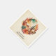 Guardanapos de papel com uma bela ilustração pintada. Cactos verdes e montanhas marrons com flores laranja do deserto. Cênico bonito design a sudoeste.