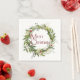 Estes guardanapos de papel Holiday bonito têm uma coroa aquática verde, coroa de Natal embelezada com azul escuro preto e morangos vermelhos. No centro está o texto estilizado "Feliz Natal". Simples elegância!