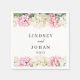 This wedding paper napkin is shown with a lovely pink and white hydrangea floral watercolor print.
