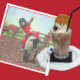 Western Rodeo Cowboy Cowboy Mutton Busting com caminhão e reboque no fundo e um caubói pela vedação observando
