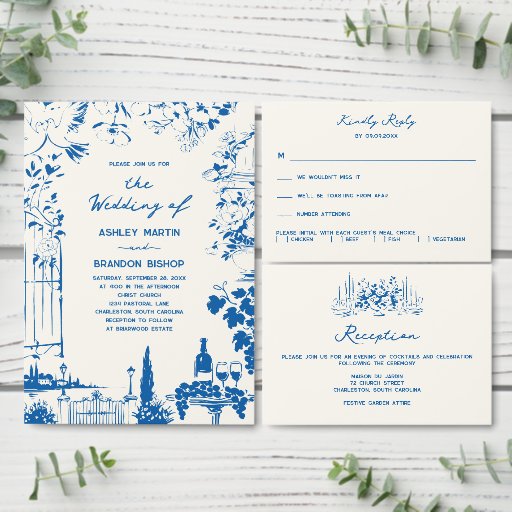Guardanapo De Papel Whimsical French Blue Botanical Crest Wedding