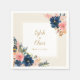 As flores frescas, elegantes, de cor d'água, em azul vibrante marinho e cor-de-rosa pincelado doce, são acentuadas com dourados antigos macios. Estes guardanapos personalizados foram projetados para combinar com a nossa coleção de convites para casamento, Marinho de Elegância Selvagem, Blush e Dourado.