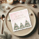 Celebrate your little one’s milestone with these Winter Onederland Pink Bow Pine Trees 1st Birthday Napkins featuring silver snowflakes and three festive Christmas pine trees with pink bows. Easily personalize all text and photos for a magical winter birthday celebration.