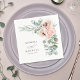 Com encanto romântico, esta adorável design de guardanapo de casamento tem um buquê de canto sabiamente canto de bege neutro e flores cor-de-rosa pinceladas com ramificações de eucalipto em cascata e outros verdes à deriva. O olhar é suave e feminino. Personalize o texto com os nomes da noiva e do noivo e a data do casamento ou outro texto desejado.