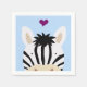 Zebra com guardanapos de papel com placas de papel correspondentes.