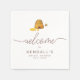 Guardanapos personalizados Bride to Bee. Este sinal de boas-vindas em estilo country é projetado com uma colmeia em estilo aquarela com uma abelha voando e mel pingando. O fundo do design é definido como branco, mas pode ser alterado para qualquer cor que você preferir.