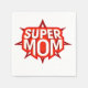 Guardanapo do Dia das Mães com um design de logotipo Super Mãe vermelho branco.