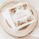 O design da caligrafia dos guardanapos de casamento pode ser descrito como encantador e cativante. A intrincada técnica de aquarela dá um toque suave e etéreo ao design, criando uma atmosfera romântica. A caligrafia transmite um senso de elegância e atemporalidade, complementando perfeitamente a beleza natural dos elementos florais. Juntos, esses elementos criam um design harmonioso e visualmente deslumbrante que certamente conquistará o coração de quem o encontra. Itens combinando estão disponíveis.