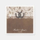 Guardanapos de casamento country de ferraduras e renda rústicos. Personalize com qualquer texto. Itens correspondentes disponíveis.
