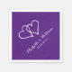 Corações roxos reais entrelaçando guardanapos de casamento. Design de símbolo de amor elegante para festa de recepção romântica. Cores personalizáveis e nomes personalizados da noiva e do noivo, além da data do casamento. Também é bom para noivado clássico, chá de panela chic, churrasco de jardim ou festa de aniversário de rico. Típica de caligrafia com na moda e corações duplos interbloqueados.