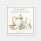 Guardanapos de chá de panela vintage e elegantes com tema de casamento. Os guardanapos podem ser personalizados com a inclusão dos detalhes do seu chá de panela. O design apresenta um bule de chá antigo, xícaras e pires de porcelana e um lindo e doce buquê de margaridas.