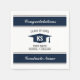 Guardanapos de festa de formatura personalizados para formandos. Personalize com seu próprio nome, ano, monograma etc. Design de modelo elegante com o logotipo do boné de tassel acadêmico e listras atléticas. Faça seus próprios suprimentos descartáveis e jogue fora acessórios para formandos. Perfeito para formar mais velho, formandos universitários e universitários. Exemplo de combinação de cores azul e cinza. Disponível em tamanho de coquetel pequeno e maior. Excelente para janto, almoço, lanches e muito mais.