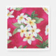 Fundo vermelho com guardanapos de papel de flores brancas de plumeria havaiana para combinar os pratos da sua praia ou festa de piscina. Chapas de papel correspondentes disponíveis.