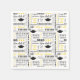 O guardanapo de papel para festa é mostrado no tamanho coquetel branco com uma impressão de mensagens e gorros de formatura.