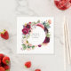 Elegante moldura boêmia em aquarela de flores, penas e folhagens em tons sofisticados de roxo, burgundy, rosa, pêssego e verde, guardanapos de papel personalizados. O estilo da fonte do texto e a cor podem ser personalizados. Projetado para combinar com nossa Coleção Boho Flores.