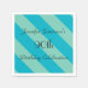 Um padrão de faixas diagonais azuis e verdes decora este guardanapo de papel de festa único e divertido. Embora o padrão diga "Aniversário de 90", você pode facilmente mudar o texto para nome, número de anos e evento. Todos os Direitos Reservados © 2014 Alan & Marcia Socolik.