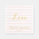 Crie seus próprios guardanapos de papel personalizados, elegantes, modernos, com listras cor-de-rosa, padrão de tipografia / script / fonte, para coquetel de festa de casamento / aniversário. Basta digitar os nomes dos noivos ou esposos e a data do casamento para personalizar. Guardanapos de papel elegantes e sofisticados, perfeitos para recepção de casamento, celebrações de aniversário, festa de noivado e muito mais.