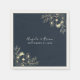 Elegantes guardanapos de casamento azul-marinho modernos com renda floral falsa dourada e escrita simples em caligrafia. Escolha perfeita para casamentos contemporâneos de outono!