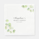Guardanapos para um chá de noiva em um estilo suave, elegante e minimalista, decorados com galhos com folhas verdes.