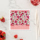 Guardanapos de papel personalizados com um design doce e colorido com uma borda pontilhada em rosa empoeirado, um bloco de lindas rosas rosa e vermelhas e uma faixa de texto personalizável. Personalize com um nome ou curta saudação em uma fonte de letra cursiva branca moderna. Perfeito para chá de noiva, aniversários, chá de bebê, festas de jardim, chá de tarde e celebrações românticas.